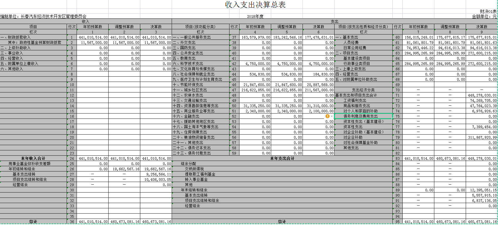 2018年度收、支总计分别是44101.11万元和44827.8万元。