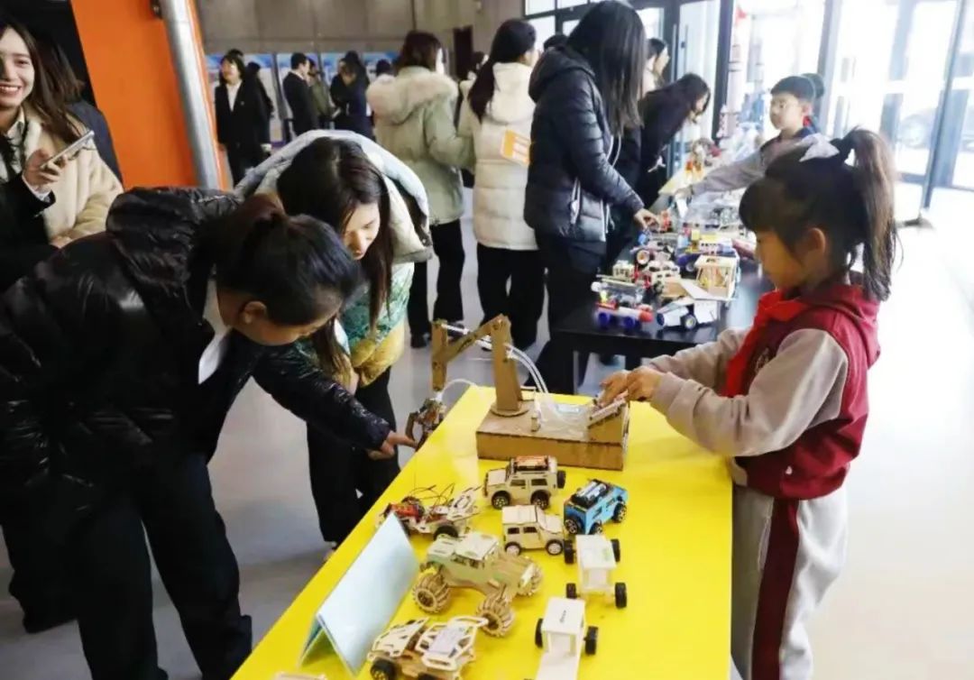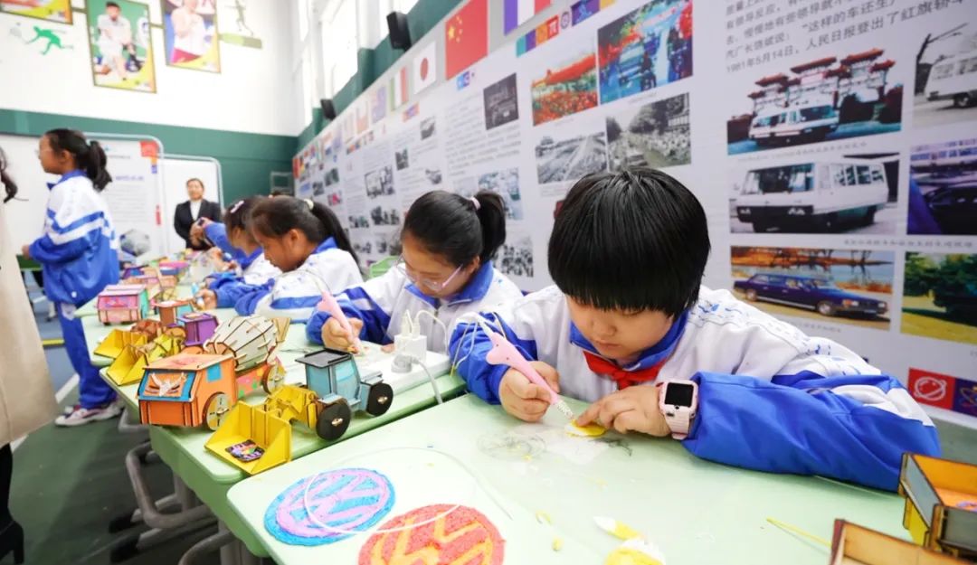 在学校内,来宾们观摩STEM说课展示、参观并参与了“小院士作品展”与“科技嘉年华”“汽车总动员”等活动。同时走进学校劳动体验馆,参观学校“寒地日光田园温室研究性学习”展区,沉浸式体验带有“长沈印记”的“四坊三室一中心”各工坊特色社团课程。相关教师代表采用“任务驱动”教学法、以“制作驱动小车”为主线,为现场带来《自制驱动小车》观摩课程,充分展示学校引导学生体验创造劳动、并在劳动中不断精益求精、追求卓越的育人过程。
