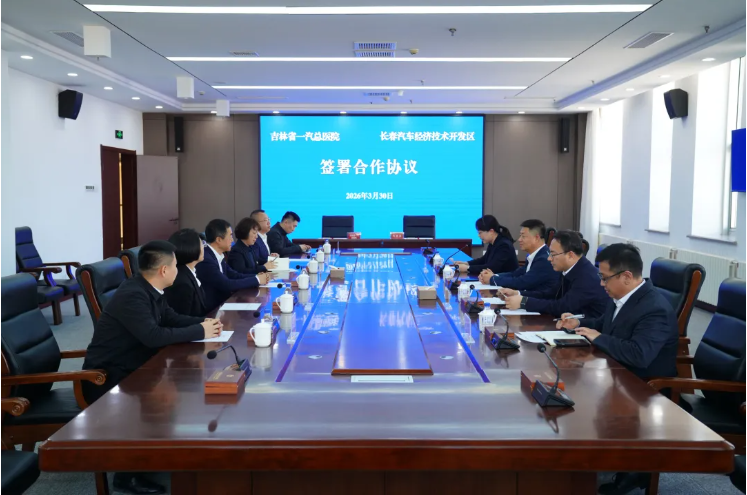 3月30日,汽开区与吉林省一汽总医院签订合作协议。汽开区党工委书记李国辉,区党工委副书记、管委会主任王华,吉林省一汽总医院党委书记苑志新共同出席签约仪式。
