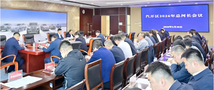 3月30日,汽开区党工委书记李国辉主持召开2026年区级总河长会议,深入学习贯彻习近平生态文明思想,全面落实省级、市级总河长会议部署要求,总结“十四五”以来全区河湖长制工作,安排部署下一步重点任务。区党工委副书记、管委会主任王华出席会议。